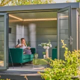 Featuring large floor-to-ceiling windows and glass doors, the interior of the Como 4 garden office is bathed in natural light. It provides a versatile and practical workspace that can be tailored to fit your every need. Fully insulated with double-glazed opening windows and doors, the Como 4 is an ideal sized insulated garden office pod with space for up to two people.